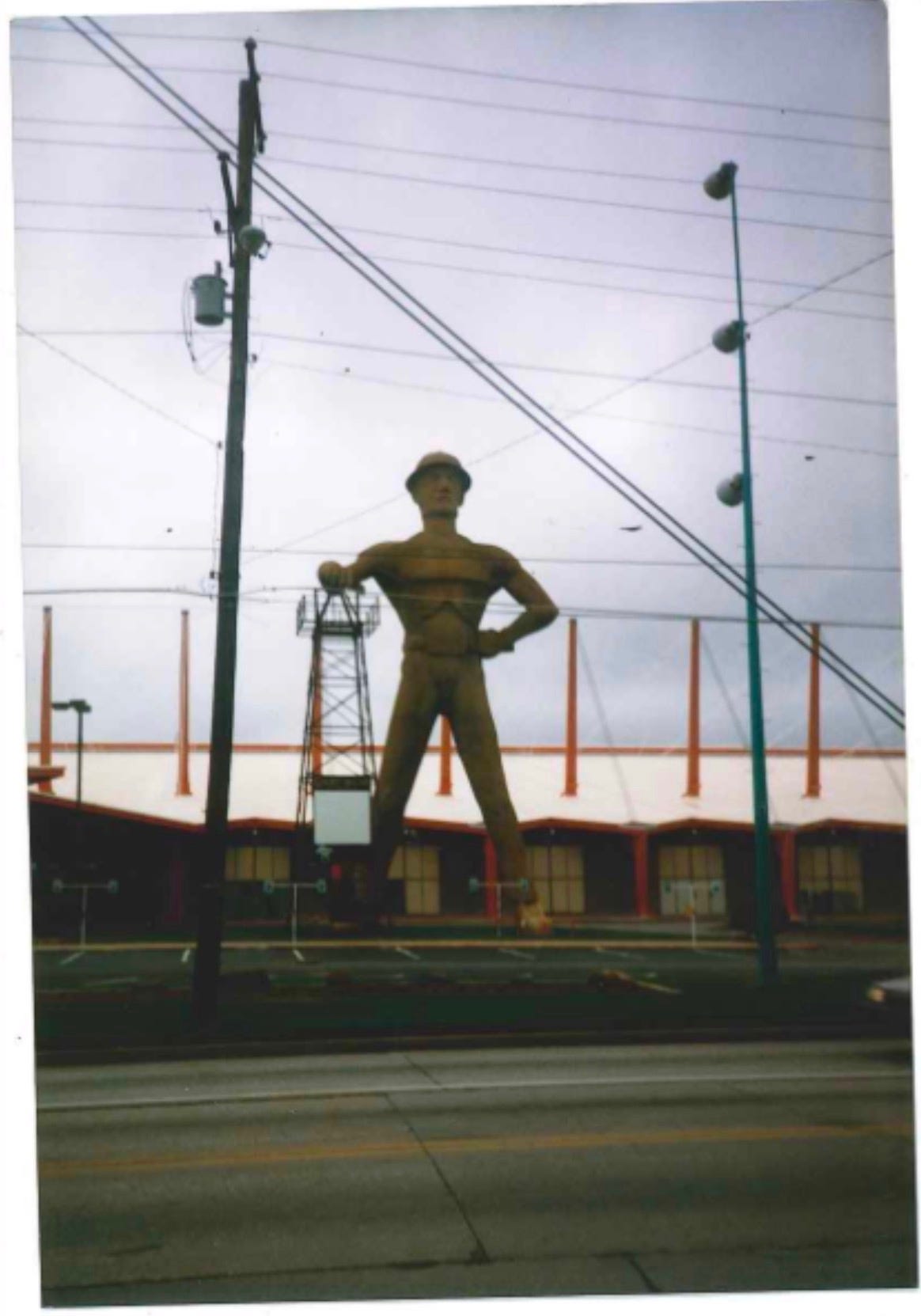 Standing at the foot of the Golden Driller in Tulsa, Oklahoma, there was not much else to do but take pictures. I clutched a 110 film camera and the day was clouded over, the sky a solid sheet of gray spitting the occasional bout of angry slantwise drizzle. We were umbrella-less and underdressed, both of us in Dr. Marten boots and coats that were defenseless against wind or rain.